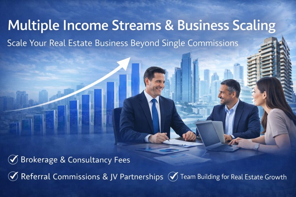 This program is designed to help property consultants move beyond single-commission transactions and build structured, long-term, wealth-generating real estate businesses. Learn how to diversify your income, build a team, and scale from solo consultant to business owner.